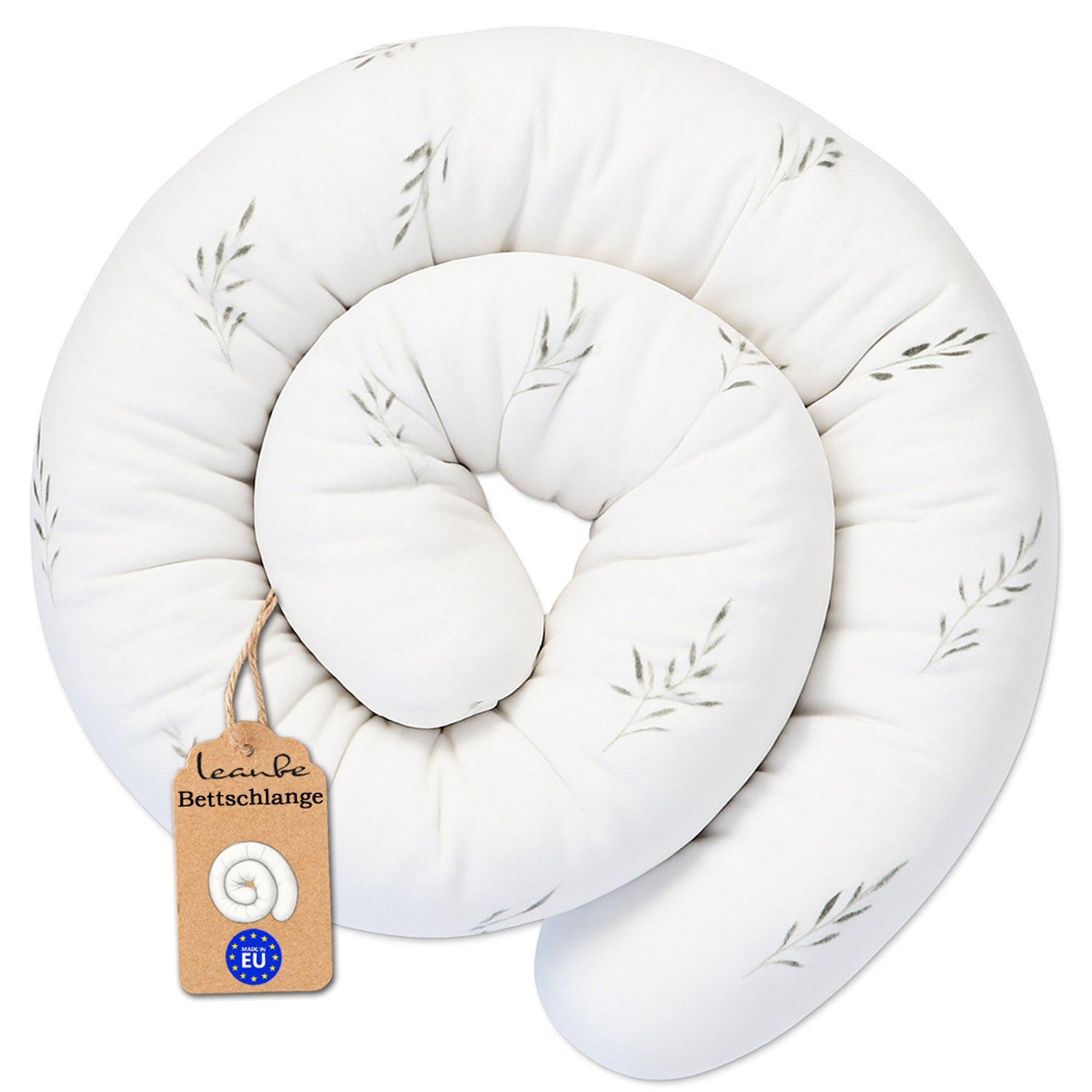 Unsere Bettschlange ist ein echtes Multitalent: Sie schützt Babys und Kinder zuverlässig vor harten Bettkanten, Gitterstäben und kalten Wänden und kann gleichzeitig als Stillkissen, Kuschelrolle oder Spielunterlage verwendet werden. Dank hochwertiger Materialien und sorgfältiger Verarbeitung verbindet sie Funktionalität mit stilvollem Design – ideal für Kinderzimmer und Wohnzimmer.