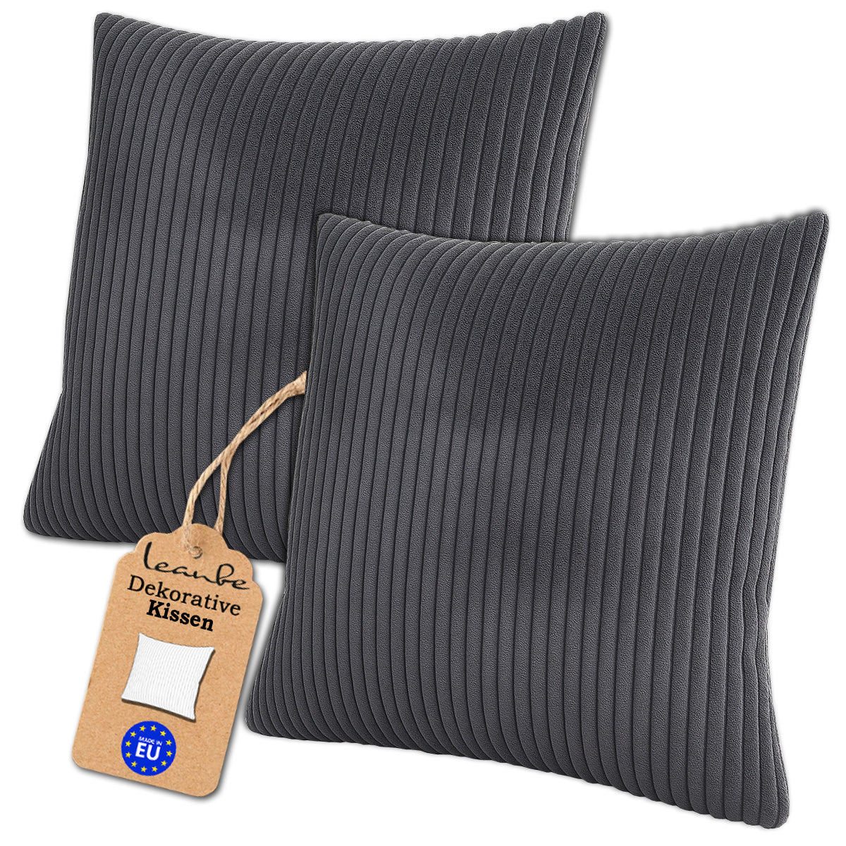 Die dekorativen Kissen von Leanbe bestehen aus hochwertigem Cordstoff (100 % Polyester), der weich, langlebig und pflegeleicht ist. Das Set umfasst 2 Hüllen ohne Füllung und ist in den Größen 40×40 cm, 45×45 cm und 50×50 cm erhältlich. Die Farbvarianten Grau, Beige und Lila passen ideal zu modernen Wohnstilen. Dank des verdeckten Reißverschlusses lassen sich die Bezüge einfach ab- und wieder aufziehen. Sie sind maschinenwaschbar bei 30 °C, bügelfrei und behalten auch nach vielen Wäschen ihre Farbechtheit.