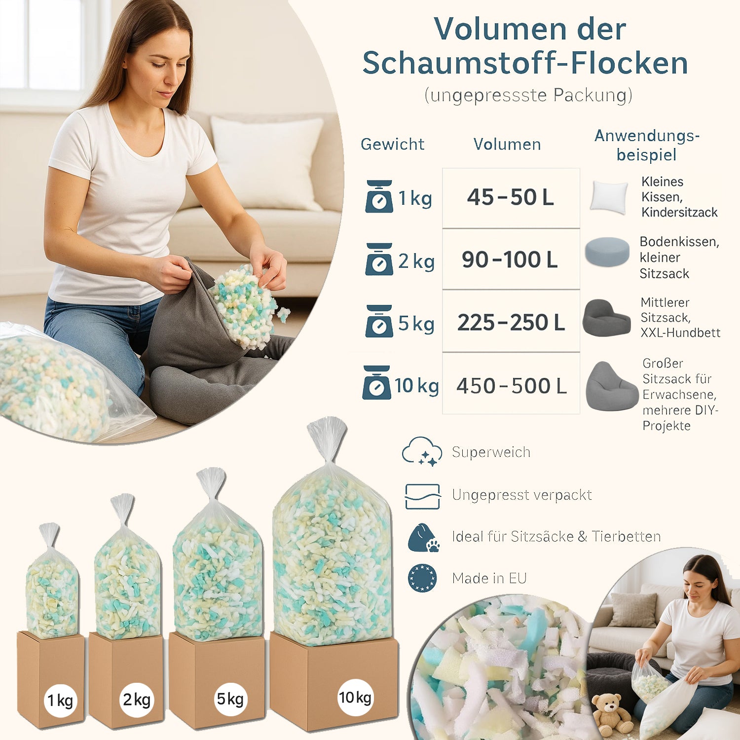 Kissenfüllung Füllmaterial Kissen Füllstoff Schaumstoffflocken
